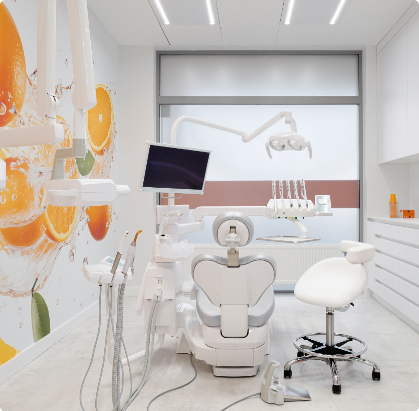 Wygodna poczekalnia, klimatyzowane pomieszczenia i spokojna, dyskretna przestrzeń sprawiają, że nawet wizyta u dentysty staje się przyjemnym doświadczeniem.